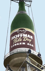 The Hoffman Beverage plant stood on the corner of South Orange Ave. and Grove Street in Irvington. The plant produced soda until 1946 when it was sold to the Pabst Brewing Co. The unique part of the plant is the large soda bottle on the roof of the building which could be seen from motorists on the Garden State Parkway. The bottle was originally used as a water tank.