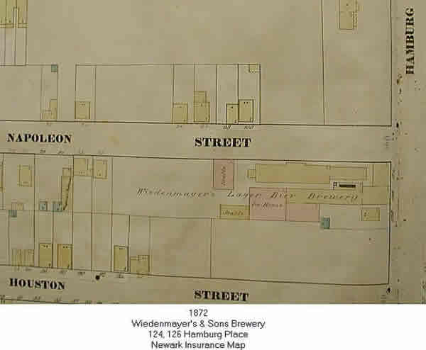From: Newark, N. J. Illustrated 1893 On the site where George W. Wiedenmayer has has flourishing Newark City Brewery, the making of lager beer has been carried on with varying success since 1850. The brewery had been run in a small way till on January 1, 1879, when the present proprietor, (whose father, Christopher W., was one of Newark's pioneer brewers), purchased the plant and took possession. Under his management and guidance the brewery has steadily grown until it has a capacity of 75,000 barrels annually, and with a constantly increasing trade and demand for its justly celebrated product, which deifies competition for age, purity and brilliancy. Along with the many other important additions and improvements he has lately made, is the erection of an attractive and commodious building in which are his pleasant offices, where the business is transacted and where he receives his friends and acquaintances. He has also erected a large five story storage building, 40x65, with a capacity of 20,000 barrels, which can be kept at a regular temperature by the most modern refrigerating machines. Beside the very best cooling apparatus, Mr. Wiedenmayer has gathered into his brewery all the very latest and best improved machinery and appliances for making beer to be found in the country, and has added stables with a stabling capacity for 36 horses, in fact he has remodeled the entire concern in the past few years. His brewery now covers the entire block bounded by Market, Chambers, & Ferguson Streets, with the rear resting on the Central Railroad presenting unrivaled accommodations for receiving materials and shipping product. he bottles the product on the spot and makes a specialty of the finer grades of lager beer. He also brews large quantities of rare ales and porters, which find ready customers among consumers. Besides being a successful business man and financially sound, Mr. G. W. Wiedenmayer has ever been ready to act well has part as a good citizen.