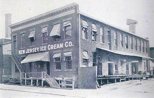 The original start of the New Jersey Ice Cream Co. was at 136 Front Street. There, the concern was burned out and those interested bought the lots now occupied on Mt. Pleasant Avenue. Frank Wadsworth, Samuel J. Campbell and George H. Fritz were originators. A building 40 x 80 feet in dimensions, a three story brick structure, which was the original site of the business on this street and which now contains the general offices, the ice houses and the place where famous ice creams of various flavors are manufactured. In summer, from 60 to 120 tons of ice are used daily, in the production of immense quantities of ice cream. The company owns other ice houses in the country, one located at New Hampton, N. Y., and one at Turners, N. &., aggregate capacity of which is 30,000 tons. In addition to these many interesting features, the company also has its own creameries, located in Mansfield, Pa., and Seely Creek, N. Y., and receives its supply of fresh cream daily direct from these creameries, thus assuring a large quantity of fresh pure rich cream. The factory proper, which is devoted to the making of ice cream, is spotlessly clean, everything used in connection with the work being immaculate, the equipment, too, is of the best character. The Mixing Room is located on the second floor and contains, among other machines, two large German silver mixing tanks, holding 150 gallons each. After the cream, sugar and flavor has been measured into the tanks and thoroughly mixed by means of two dashers located in center of tanks and revolving in opposite directions, it is then run through sanitary nickel pipes direct to the ice cream freezers located on the first floor. These machines are the latest patent of the Miller Pasteurizing Machine Co. of Canton, Ohio, and freezes the cream by means of the circulation of cold brine around the freezers instead of the old method of cracked ice and salt. The hands of the operator do not come in contact with the product from start to finish. The company's product is unexcelled for flavor, purity or smoothness. Fruit flavors only are used in the making of such cream as peach, strawberry, raspberry, pineapple and orange. All kinds of fancy forms are made, and one of the most popular products is the country club bricks. These creams are sold, not only in Newark, but are also distributed to Elizabeth, Jersey City, Rahway and indeed all through this section of New Jersey. Forty wagons and eight auto trucks are in use in the business, and these trucks and wagons all have specially made double lined ice boxes with partitions filled with pressed cork. A discharge pipe connects with the interior of each box, thus keeping the body of the vehicle dry and clean. On the opposite side of Mt. Pleasant Avenue is a building 100 x 118 feet in size, three stories high, of brick with cement floors and fully protected against fire. The company has, as one of its important departments a large carpenter shop, where timber is dressed and made ready for the general construction of wagons, ice boxes, etc. This occupies the main section of the ground floor. The remainder of this floor is used as a blacksmith shop, where two forges are kept busy and where wagons are assembled and completed, ready for the next process in the paint shop, where painting and lettering are done. The third floor of this building contains the harness shop, where now harness, to be used in the business, is manufactured, also repair work done. The second floor contains the accommodation for many horses in use, there being 100 stalls, all light and well ventilated, and containing wire partitions at the top allowing fresh air to circulate freely. This table is pronounced one of the three finest in the city. The salt bins are another feature worthy of note. These have a capacity of five hundred tons of salt, the salt being brought to Newark by board, hauled from the boat to the warehouse, where trucks are driven upon the huge elevator and hoisted to the third floor and dumped into these bins.
